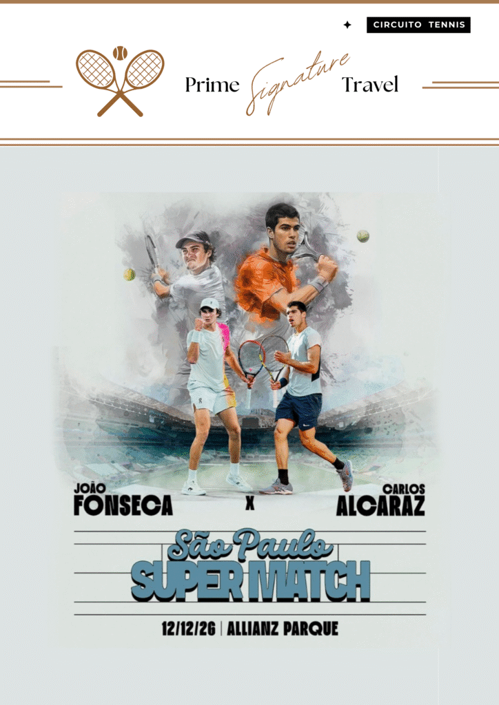 Venha assistir a partida entre João Fonseca e Carlos Alcaraz no São Paulo Super Match, no Allianz Parque – Contato: Flavia Lopes ( reservas@spprimegroup.com ) – 📞WhatsApp (11) 95243-6341